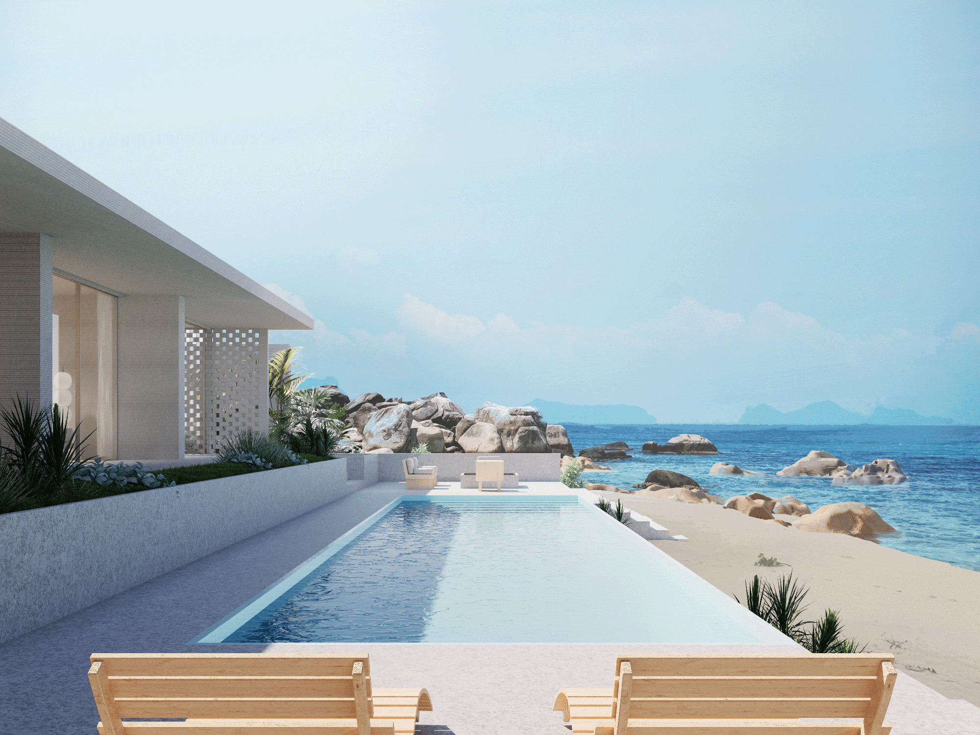 With unobstructed views of the Gulf of Thailand, this villa accommodates couples and small families for short term stays. It offers a private and peaceful experience of what Thailand has to offer.