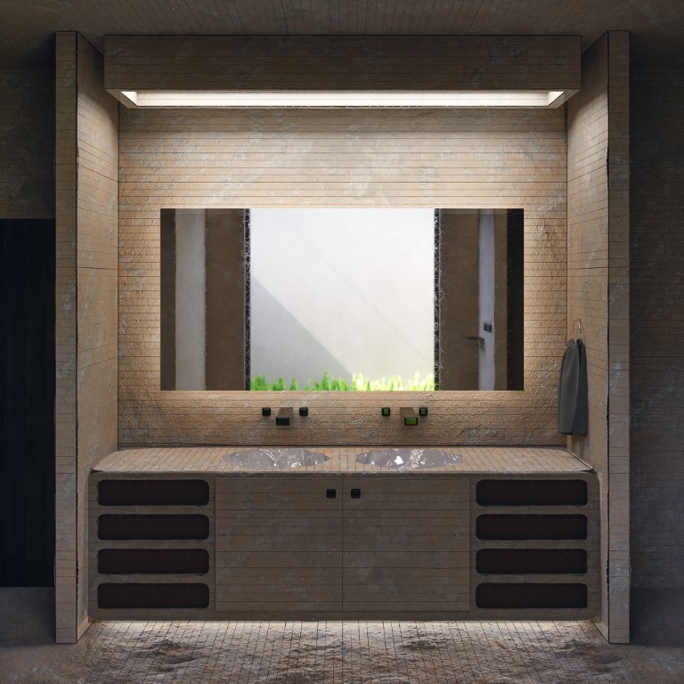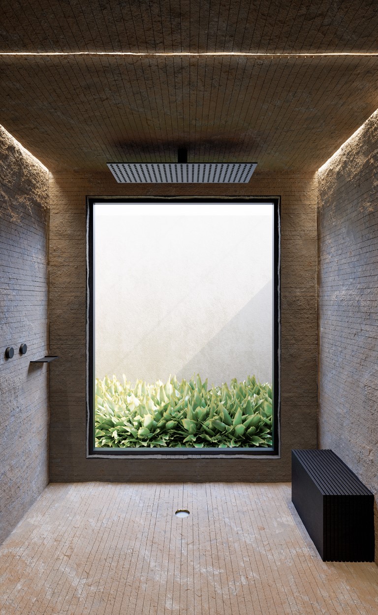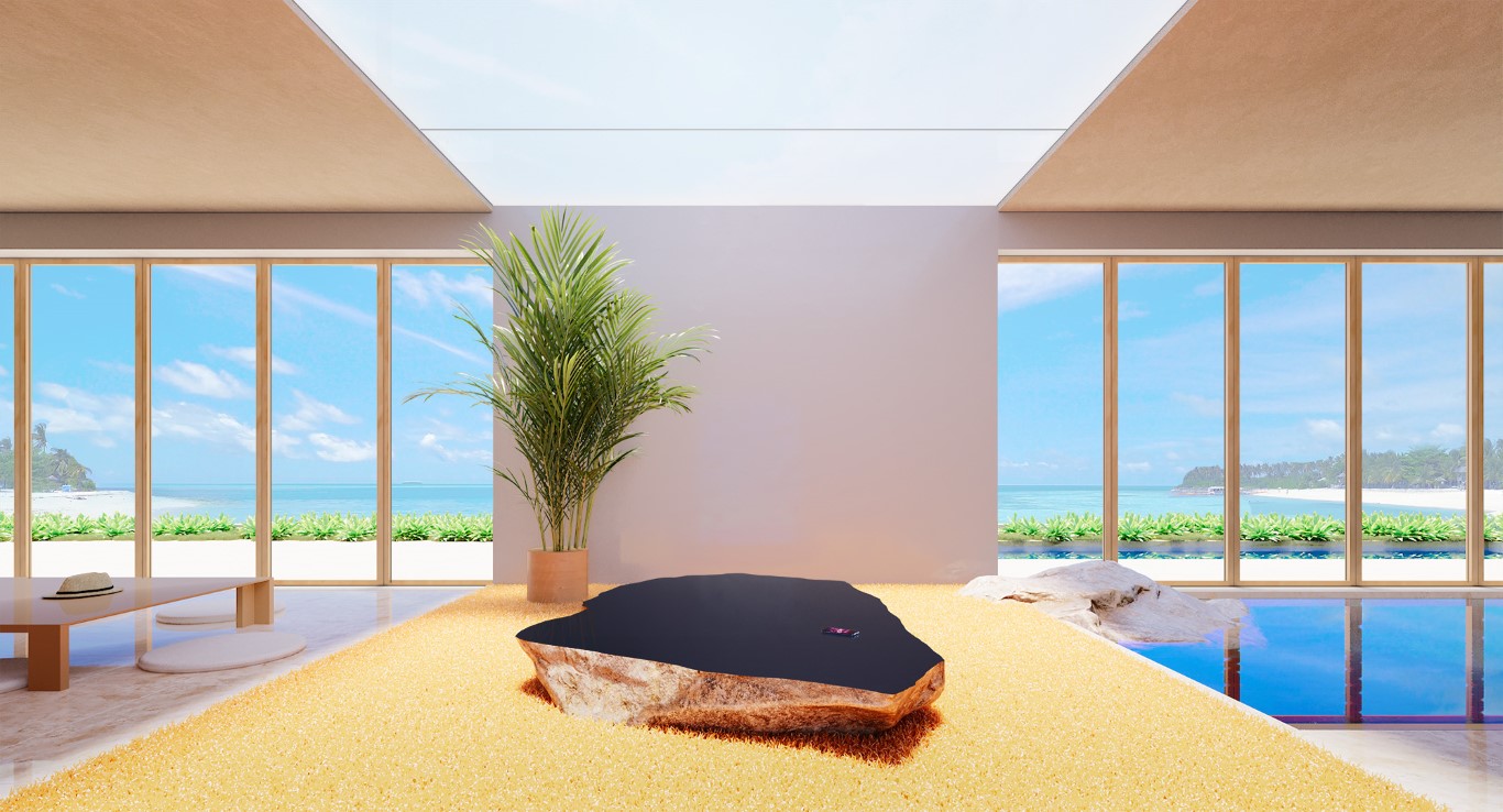 Located in Krabi Thailand, this project offers short stay guests direct access to the sea. The plan is a simple bar with sleeping on one end, living in the middle, and cooking on the other end.