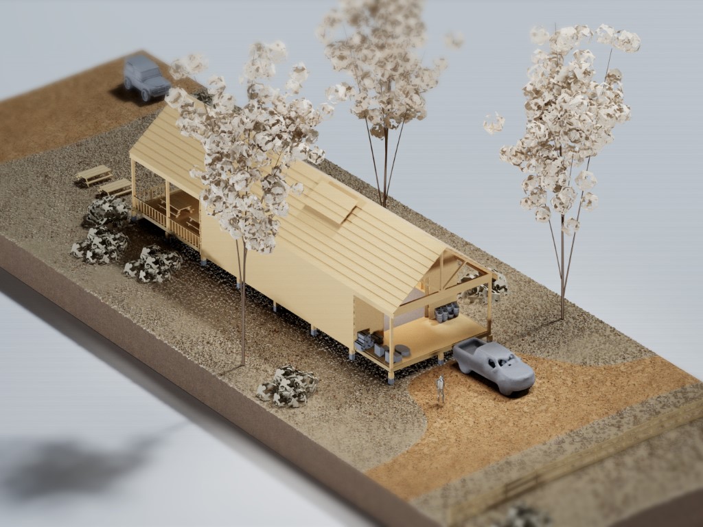 This project combines a sugar shack and small retail space. Allowing for the collection and processing of sap into maple syrup on one side, and also facilitating the sale of the maple syrup directly from the other side. The project features spaces for every step of the process from collection of raw materials, to refinement, storage, and a small cafe where customers can experience the production process and take home a fresh bottle of syrup.